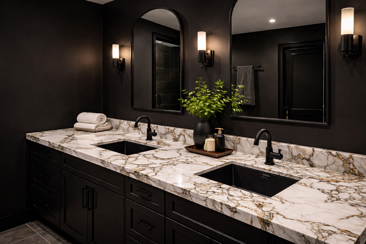 Granite, quartz and marble in many colors and patterns.